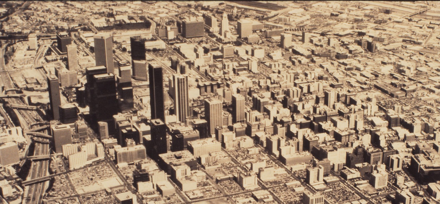 “… because that is all downtown Los Angeles deserves,” wrote Reyner Banham in Los Angeles: The Architecture of the Four Ecologies. Written in the halcyon years before the energy crisis or crippling traffic congestion and well after the Watts Riots, this classic survey is essentially a manifesto for the suburban metropolis. Banham’s four ecologies map a decentralized city organized by regional geography and the freeways rather than from a centrifugal expansion originating at the pueblo plaza or City Hall. From his perspective in 1971, downtown was certainly not the focus of the city and nothing more than a historical footnote.