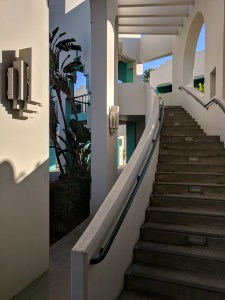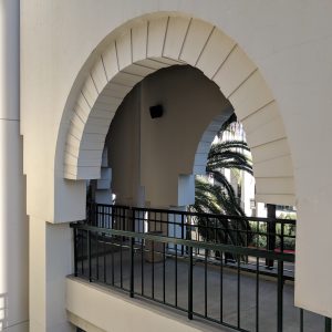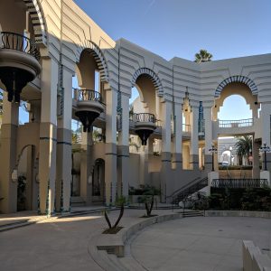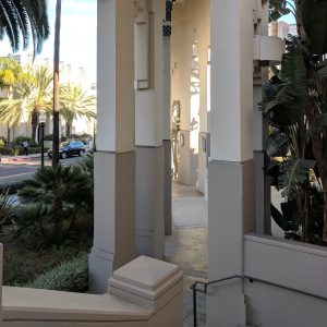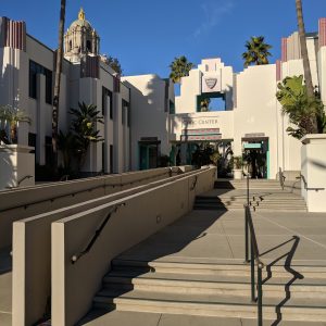 The Beverly Hills Civic Center is an astonishingly singular work of architecture. There are few places in Southern California that match the layering of courtyards, monumental arcades, theatrical overlooks, and cinematic sequences of movement found under the tower of Beverly Hills City Hall – Horton Plaza in San Diego comes to mind, where these architectural effects are employed in the service of consumption and shopping. So while in Beverly Hills you don’t have to pay for the public life, you do spend a lot of time wandering in circles attempting to find it.