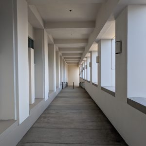 Thus entrances to the City Hall, Police and Fire Department buildings are secluded hidden behind the staircases and ramps that link the various arcades in the central oval design. For example, the wonderfully eccentric and colorful interior of the Library opens to the street through a modest corner doorway – which itself stands behind a clumsy layer of landscape from the grand Rexford peristyle.